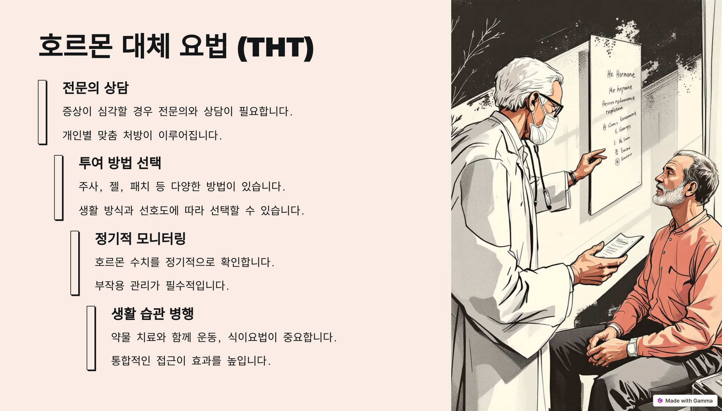 남성 갱년기는 피할 수 없는 자연스러운 과정이지만, 적절한 관리를 통해 건강한 삶을 유지할 수 있습니다.
