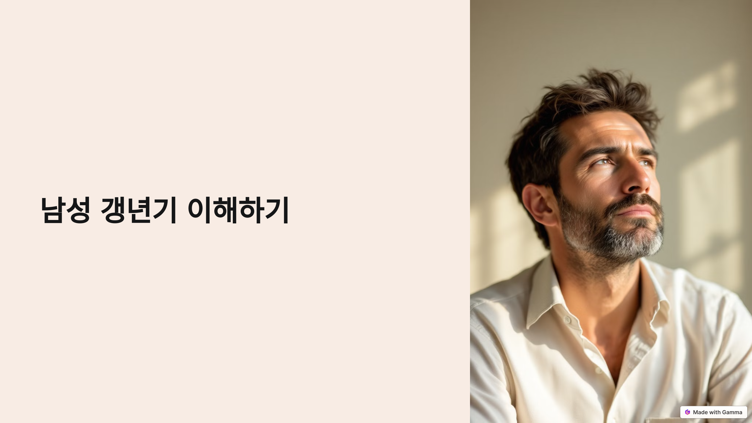 오늘은 남성 갱년기의 주요 증상과 건강 관리법에 대해 자세히 알아보고, 삶의 질을 높일 수 있는 방법을 소개해 드리겠습니다.