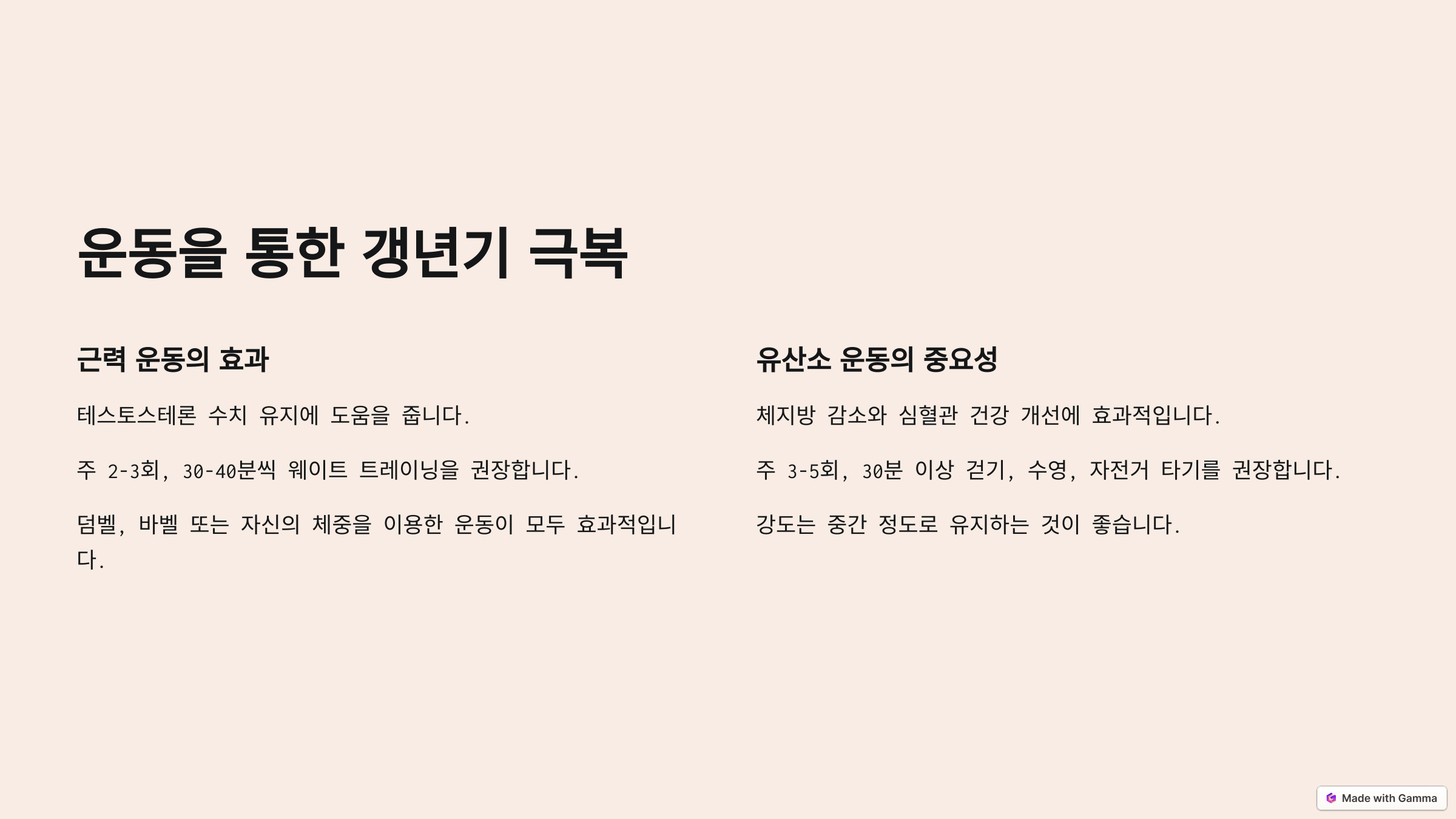 운동, 올바른 식습관, 스트레스 관리, 정기적인 건강 검진을 통해 갱년기를 슬기롭게 극복하세요.