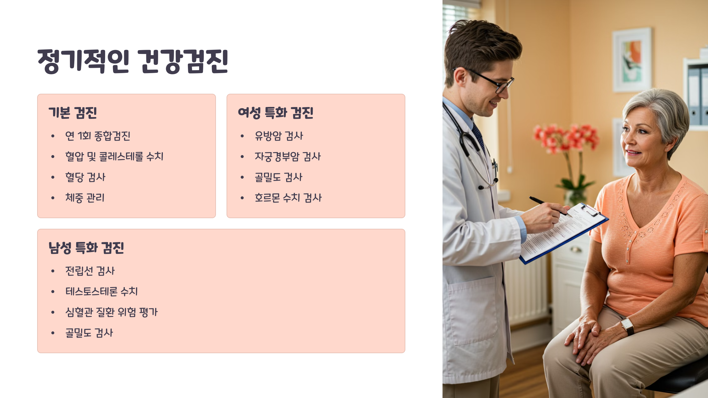 | 중년기 변화 | 건강 습관 | 정기검진 |