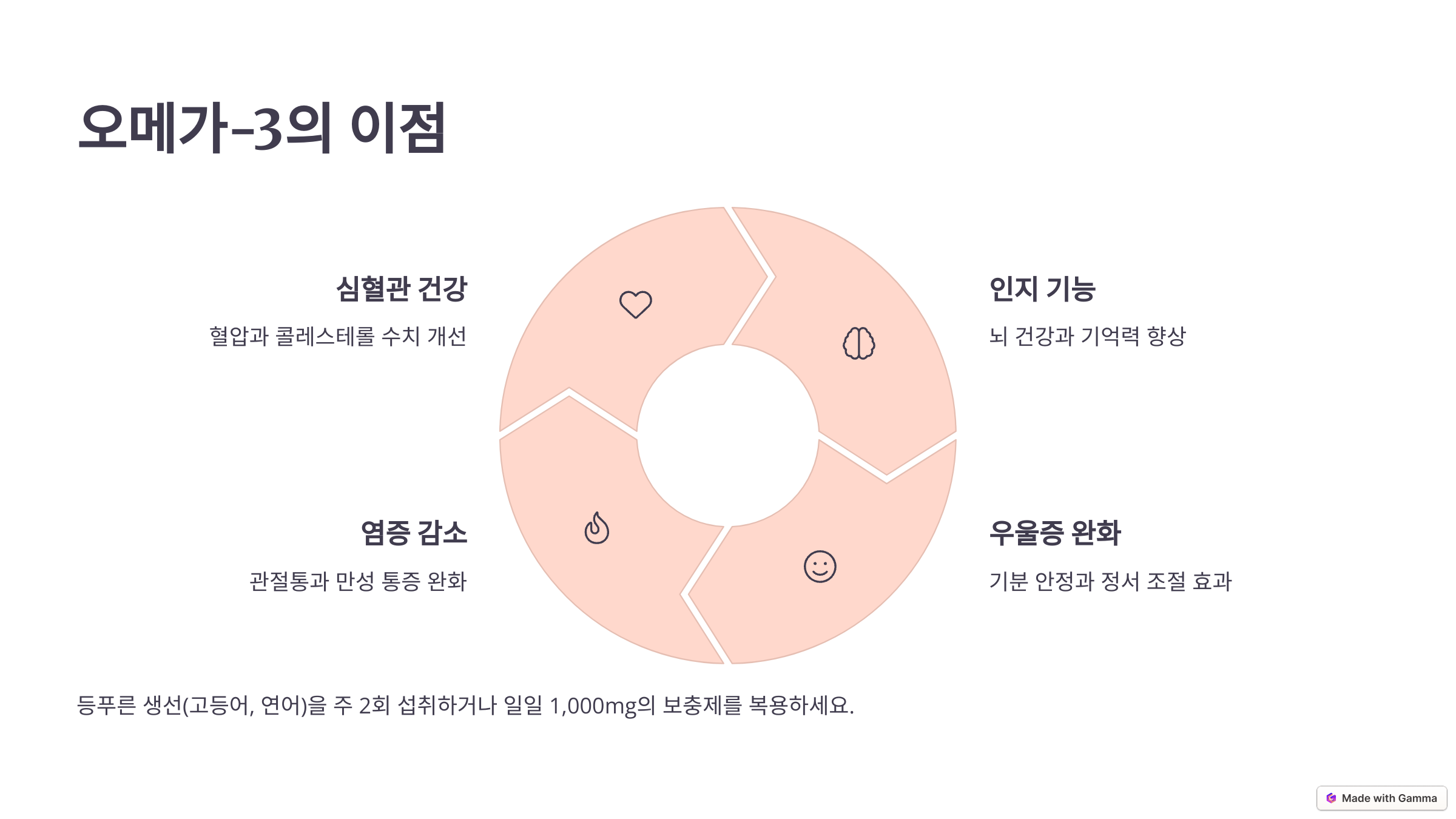 | 필요 영양제 | 이소플라본, 칼슘, 오메가3, 마그네슘 등 다양 |