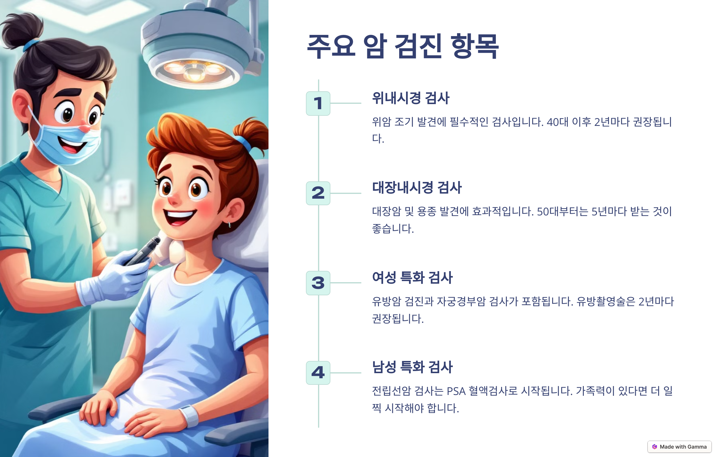 | 건강검진의 중요성 | 질병 예방과 조기 발견을 통해 건강한 삶 유지 |